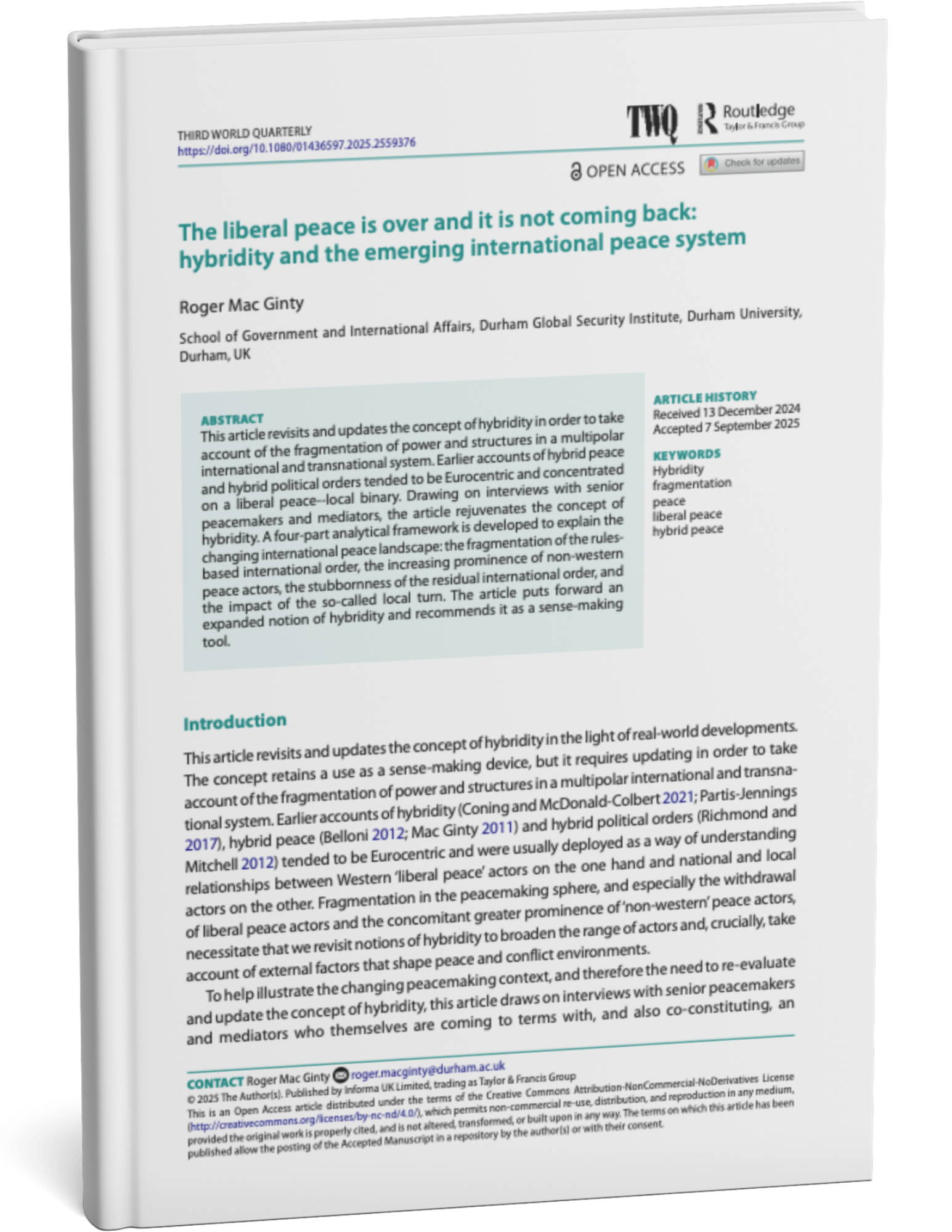 With Dr. Elliot Short, he co-authored the book Peace and Conflict Since 1991, published by Peter Lang. It lists 180 successful interventions to stop or prevent wars.
